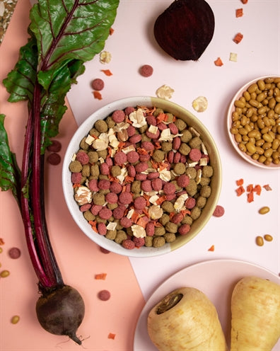 Pawr Plantaardig Vegan Beet Booster Rode Biet/Pastinaak/Bonen/Wortel 750 gr is compleet hoogwaardig plantaardig voer voor de hond, zonder dierlijke ingrediënten en met alles wat jouw dier nodig heeft.