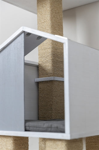 De Trixie Be Nordic Krabpaal Jonte Grijs/Wit 115 cm is een leuke krabpaal met twee ligplekken, beschut huisje en verschillende krabmogelijkheden. Deze krabpaal is een echte eyecatcher in huis! De paal geeft het gevoel van een strandhuisje, door het witte holletje op pootjes en een ligplankje. De poten en paal naar het plankje zijn omwikkeld met sisal, waar jouw kat naar hartenlust aan kan krabben. Op het ligplankje kan hij heerlijk dutten of overzicht houden wat er allemaal in huis gebeurt. Voor een goede nachtrust of meer beschutte powernap kan hij zich terugtrekken in het huisje. Zowel de plank als het huisje zijn voorzien van een comfortabel kussentje dat op de hand gewassen kan worden. Deze krabpaal is een echte must have in elk kattenhuishouden!