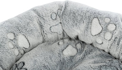 Het Trixie Hondenmond Nando Rond Lichtgrijs van 50 x 40 cm is een comfortabel hondenkussen met rand met en kussen, bekleed met heerlijk zacht fleece en wasbaar op 40 graden. Heerlijk uitrusten doet jouw viervoeter in deze comfortabele mand van Trixie. Mand Nando is een rond hondenbed met polyestervlies vulling en bekleding van heerlijk zacht fleece. Tegen de rand kan jouw dier lekker opkrullen en de mand heeft een kussen voor meer comfort. De mand is wasbaar op 40 graden en uitgerust met een leuke print met pootafdrukjes.