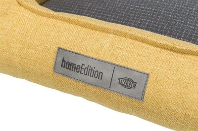 De Trixie Hondenmand Talis Hoekig Geel / Donkergrijs van 100 x 70 cm is een comfortable mand voor de hond, van geweven stof met geïntegreerd kussen en slipvaste onderkant. Dit kussen is stijlvol én comfortabel. Het is bekleed met een stijlvolle geweven stof en heeft een polyestervlies vulling, waardoor het jouw hond veel steun biedt. Op de hoge rand kan jouw hond comfortabel zijn kop laten rusten. Het kussen is geïntegreerd om schuiven te voorkomen en ook heeft het kussen een slipvaste onderkant die voorkomt dat de mand verschuift bij het instappen. Met afneembare bekleding voor veel gebruikersgemak.