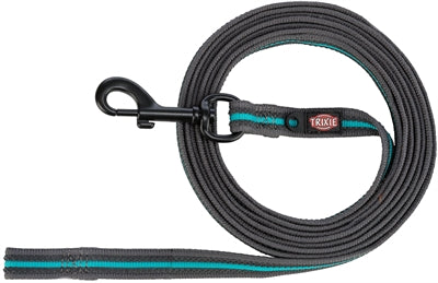De Trixie Hondenriem Sleeplijn Fusion Grafiet Grijs / Oceaan Blauw 15 m x 17 mm is een lange, slipvaste looplijn voor de hond, bekleed met rubber en met neopreen gevoerd handvat. Deze Fusion sleeplijn van Trixie biedt comfort, veelzijdigheid en veiligheid door weer en wind. Door het met rubber beklede singeland is deze looplijn slip- en gripvast, ook bij slechter weer. De lijn is maar liefst 15 meter lang voor veel bewegingsvrijheid en heeft een comfortabel, met neopreen bekleed handvat. Ook is de Fusion riem voorzien van een oogje om bijvoorbeeld de hondenpenning of een flasher aan te hangen.