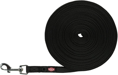 De Trixie Hondenriem Sleeplijn Met Rubber Bekleed Zwart 10 m x 1,5 cm is een sleeplijn bekleed met rubber voor meer grip en bescherming tegen weersinvloeden. Door deze combinatie en de lengte van 10 meter kun je jouw hond in elke situatie en elk seizoen meer bewegingsvrijheid geven. Door de bekleding met rubber is de lijn gemakkelijk te reinigen. De lijn is uitgevoerd zonder handlus en heeft een extra oogje om een hondenpenning of flasher aan te bevestigen.