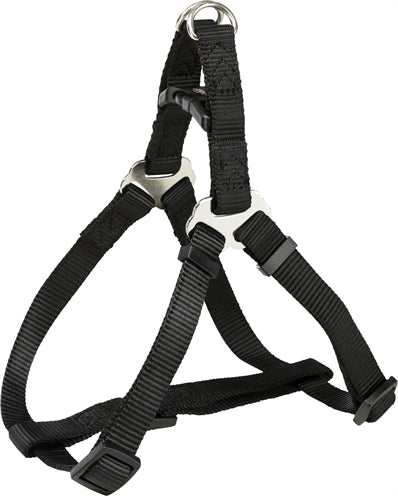 Het Trixie Premium One Touch Tuig Zwart 65 - 80 x 2,5 cm is een comfortabel tuig voor de hond van verstelbaar singelband, dat geen druk op de hals uitoefent. Dit tuig is voorzien van banden bij de borst en de buik, om de nek te ontlasten en gezondheidsproblemen te voorkomen. Het tuig is gemaakt van stevig singelband dat traploos verstelbaar is voor een goede pasvorm. De gesp is voorzien van trekontlasting. Aan de ringen bovenaan bevestig je eenvoudig jouw looplijn of hondenriem.