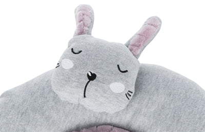 De Trixie Junior Ligmat Konijn Grijs / 40 cm is een comfortabel rond hondenkussen van sweatstof/pluche slipvaste onderkant en schattig konijnenkopje. Zo voelt jouw pup zich gelijk thuis! Met deze lekkere zachte ligmat van sweatstof/pluche heeft jouw hond gelijk een eigen plekje. Dit ligmatje is gemaakt van sweatstof/pluche met een polyestervlies vulling. De ronde vorm zorgt dat de hond lekker opgekruld kan slapen. Door de slipvaste onderkant schuift de mand bovendien niet weg als de hond er in en uit wil stappen. Het leuke detail van het pluche konijnenkopje maakt het helemaal af!