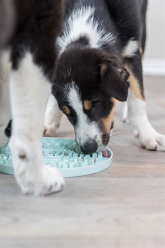 De Trixie Junior Likplaat Mintgroen 21X21 cm is een ronde Lick'n'Snackplaat voor puppy's en kleine honden, ideaal om bezig te blijven met bijvoorbeeld paté of natvoer. Likken is voor honden een prettige bezigheid: het werkt kalmerend en zorgt voor rust. In deze likplaat kun je daarom lekkere traktaties zoals paté of natvoer stoppen. De hond zal langdurig bezig zijn met het weglikken van de beloning, wat verveling voorkomt met slechts opname van een geringe hoeveelheid snacks. In de zomer kun je de plaat inclusief snacks bovendien invriezen, zodat jouw pup verkoeling heeft én nog langer bezig is zijn traktatie te pakken te krijgen.