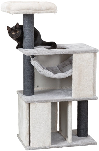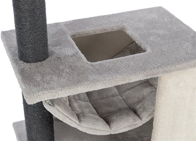De Trixie Krabpaal Juliano Grijs 115 cm is een mooie krabpaal in strak ontwerp met jute en verschillende ligplekken. Krabben is een natuurlijke behoefte voor de kat. Hiermee markeert de kat zijn territorium en verzorgt hij zijn nagels. Voorkom dat jouw kat krabt aan meubilair met voldoende krabmogelijkheden, zoals deze mooie krabpaal van Trixie. Deze paal bevat verschillende ligplekken en een hangmat. De ligplekken en hangmat zijn gemaakt van heerlijk zacht materiaal en zijn bekleed met pluche voor meer slaapcomfort. Deze mooie paal hoort thuis in elk kattenhuishouden.