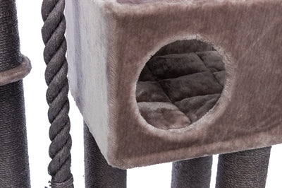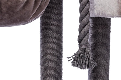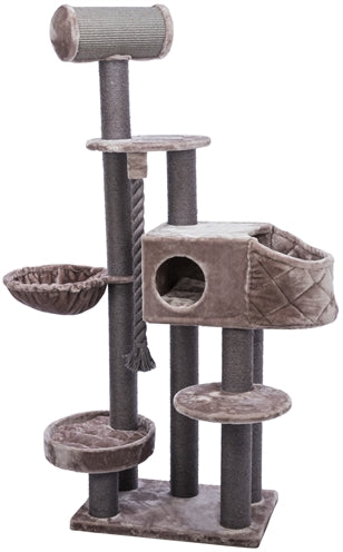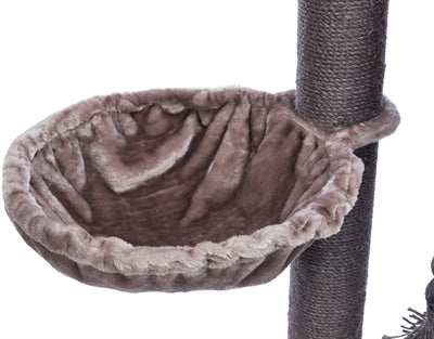 De Trixie Krabpaal XXL Andres Cappuccino 70 x 48 x 190 cm is een robuuste krabmeubel met stevige sisal krabpalen van ca. 11 cm doorsnede en is bekleed met hoogwaardig pluche in de kleur cappuccino. De dikke, massieve bodemplaat houdt dit meubel stevig en stabiel en maakt het daardoor zeer geschikt voor grote katten. Dit meubel heeft diverse slaapplekken, zoals een hangmat, slaapzak en een schuilhuis met kussen. Dit meubel is maar liefst 1.90m hoog en heeft verschillende krabmogelijkheden en hoogte niveaus waaruit de kat kan kiezen. Kortom: voldoende plaats voor één of meerdere katten.
