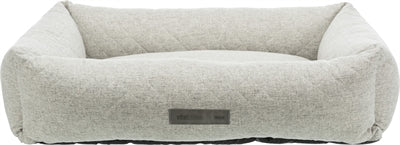 Trixie Vital Hondenmand Noah Hoekig Lichtgrijs 60 x 50 cmDe Trixie Vital Hondenmand Noah Hoekig Lichtgrijs 60 x 50 cm is een orthopedische hondenmand met memory-effect, gevulde rand en geïntegreerd kussen. Een goede slaapplek is belangrijk voor het welzijn van elke hond. Honden slapen vele uren per dag en een verkeerde ondergrond kan op latere leeftijd problemen met spieren, gewrichten en het gestel van de hond opleveren. Deze orthopedische mand van Trixie heeft daarom een ligoppervlak met visco-elastische schuimvlokken en schuimrubber vlokken met memory-effect. Dit zorgt voor een goede verdeling van het gewicht zonder dat bepaalde lichaamsdelen te veel belast worden. De mand is eveneens voorzien van een rand met polyestervlies vulling voor meer steun en bekleed met geweven stof van zacht polyester. Het kussen is geïntegreerd om schuiven te voorkomen en heeft een slipvaste onderkant zodat het niet verschuift bij het in- en uitstappen. Met afneembare, (hand)wasbare bekleding voor een lange levensduur!