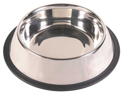 De Trixie Voer / Waterbak RVS 30 cm 1,75l per 4 stuks is een voerbak of waterbak voor de hond, gemaakt van RVS, vaatwasserbestendig, met rubberen anti-slip ring. Deze bakken zijn praktisch in gebruik omdat zij zijn gemaakt van RVS: zij zijn gemakkelijk te reinigen, ook in de vaatwasser mits de rubberen delen eerst verwijderd worden. Je kunt de bak gebruiken voor het geven van droogvoer, natvoer en water. Door het gewicht van de bak en de rubberen ring verschuift deze niet tijdens het eten.