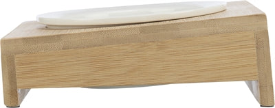 Trixie Voerbak / Waterbak Met Houder Keramiek / Bamboe 15X15X5 CM 250 ML